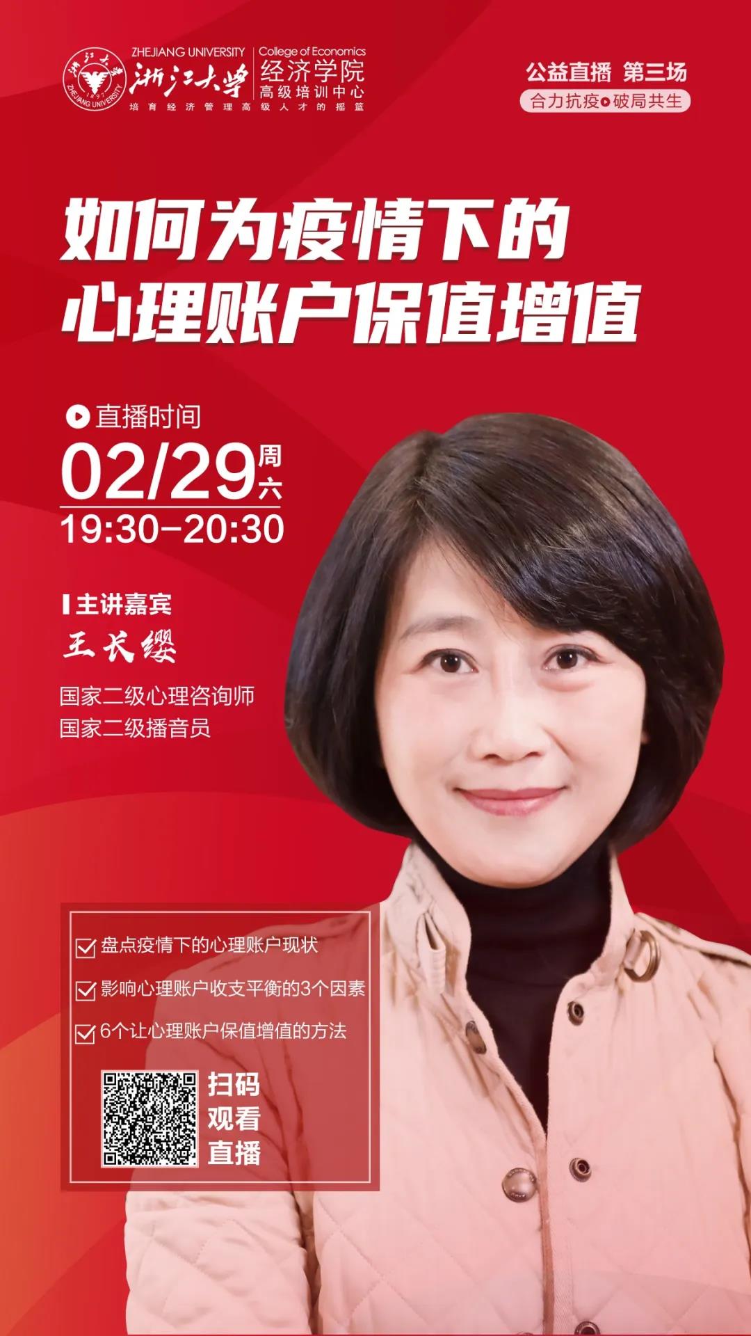 疫情之下,每一颗心都需要被呵护。本次直播,王长缨老师总结了一分心理调适指南,将在浙大CCE直播间和大家一分享,守护好每一个自我,也是打赢这场疫情战的关键构成要素之一,我们一起共克时艰,打赢这场战役。