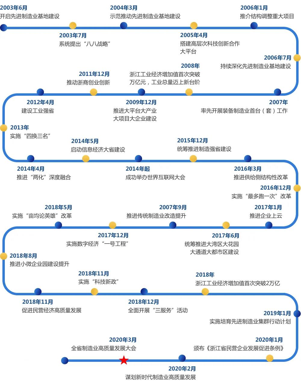 2003年,在浙江工作期间,时任浙江省委书记习近平在总结浙江经济社会多年发展经验的基础上,鲜明提出“八八战略”,浙江随之开启新型工业化的新阶段。在“八八战略”的指引下,浙江制造业走出一条从低起点向高质量的前行之路,以全国1%的国土面积、4%的人口,创造了6%的GDP,成为中国经济的第一方阵。2019年9月17日,在豫中大地,习近平总书记郑重叮咛:“一定要把我国制造业搞上去。”这声叮咛如一束光,再次照亮了浙江制造业的发展之路。