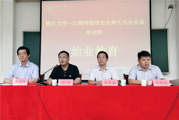 2020年8月10日上午,江阴科创型企业新生代企业家培训班在浙江大学经济学院顺利开班。江阴市人民政府副市长赵强,江阴市委组织部副部长冯明刚,江阴市工信局党委书记、局长王利峰,浙江大学经济学院党委书记张子法出席了开班仪式。