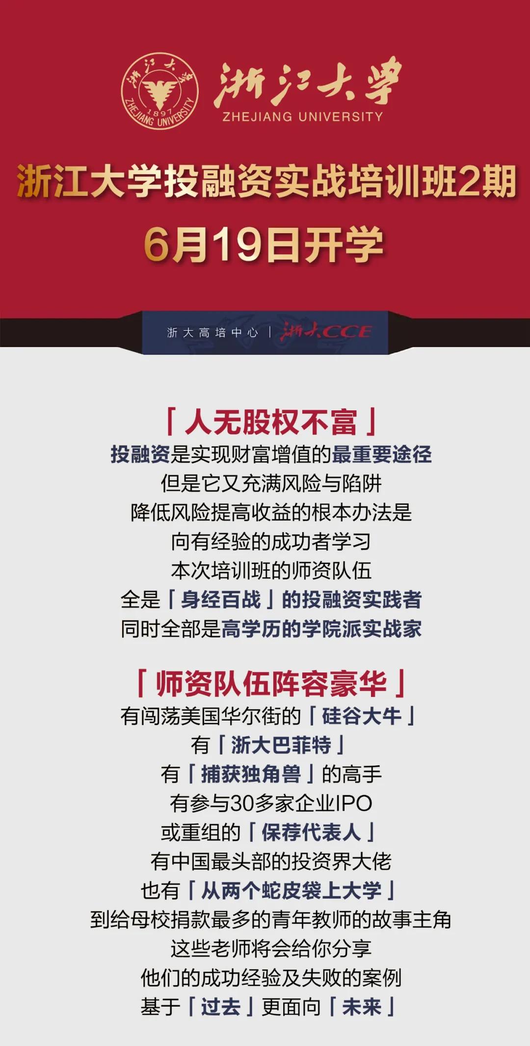 浙江大学投融资实战培训班(第二期)| 6月19日开学