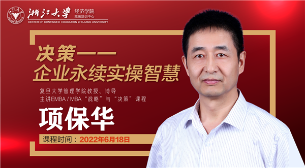 课程名称:《决策——企业永续实操智慧》课程时间:2022年6月18日授课老师:项保华企业决策研究者,复旦大学管理学院教授,企业管理专业博导,目前主要从事企业战略管理决策等领域的研究,享受国务院政府特殊津贴入,国家教育部跨世纪优秀人才培养计划入国家人事部百千万人才工程第一、二层次等