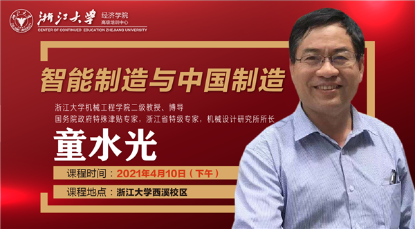 课程名称:智能制造与中国制造课程时间:2021年4月10日(下午)授课老师:童水光浙江大学机械工程学院二级教授、博导 国务院政府特殊津贴专家 浙江省特级专家 机械设计研究所所长 。