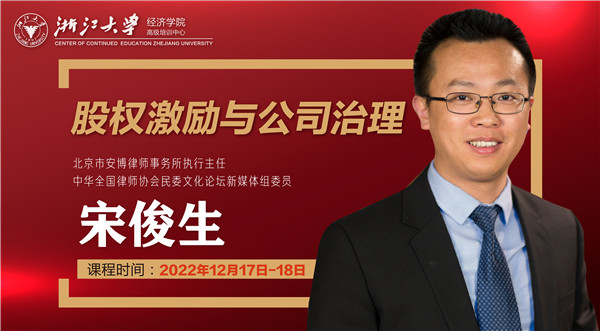 课程名称:《股权激励与公司治理》课程时间:2022年12月17日-18日,授课老师:宋俊生,北京市安博律师事务所执行主任,中华全国律师协会民委文化论坛新媒体组委员