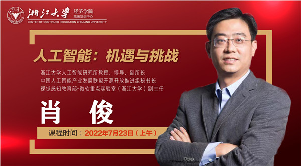 课程名称:《人工智能:机遇与挑战》课程时间:2022年7月23日上午 授课老师:肖俊,浙江大学人工智能研究所教授、博导、副所长,中国人工智能产业发展联盟开源开放推进组秘书长,视觉感知教育部-微软重点实验室(浙江大学)副主任。