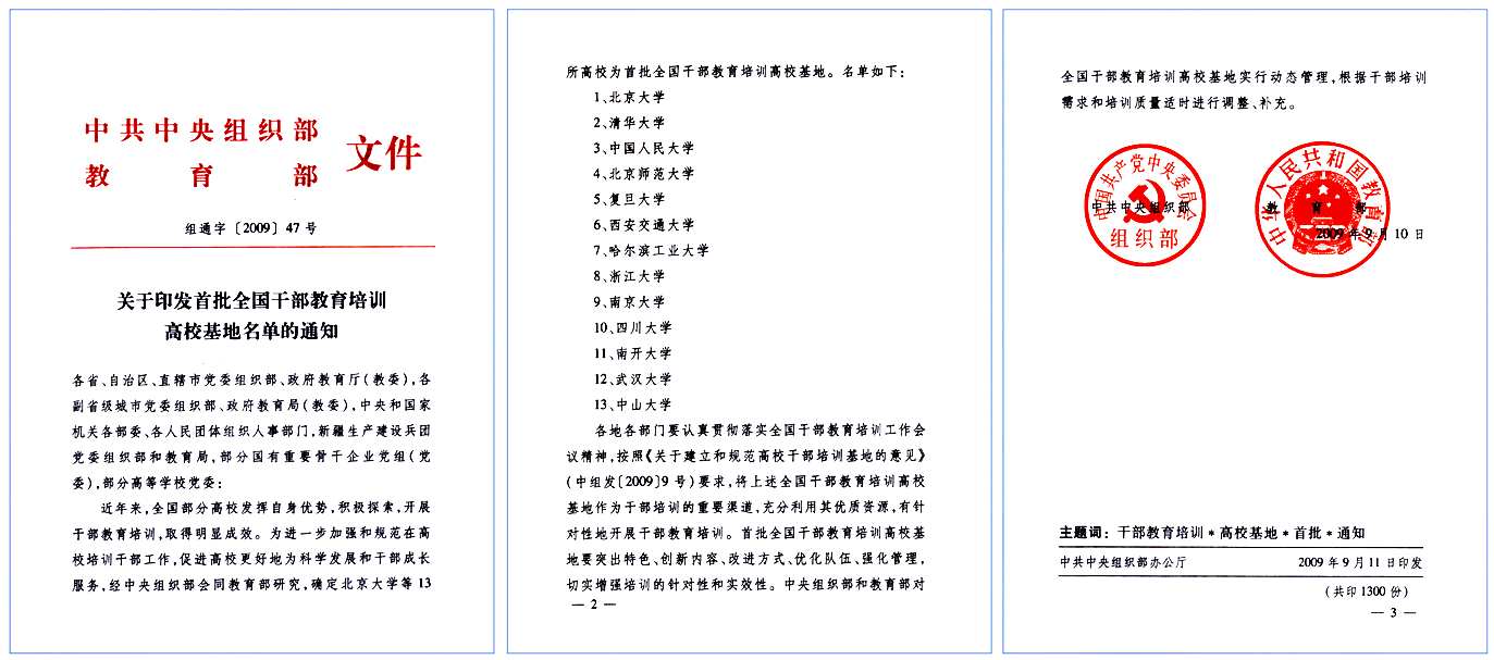 《关于印发首批全国干部教育培训高校基地名单的通知》