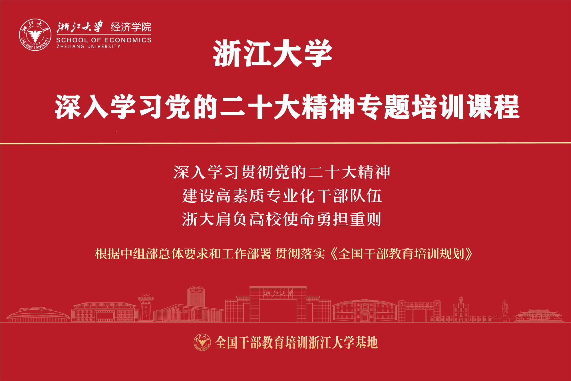 依据党的二十大精神,根据中组部总体要求和工作部署,贯彻落实《2018-2022年全国干部教育培训规划》、《干部教育培训工作条例 》、《中央和国家机关培训费管理办法》、《关于在干部教育培训中进一步加强学员管理的规定》等文件要求,通过广泛调研、充分座谈、学员意见收集、校内外专家评估等途径,在充分把握2025年各党政机关、事业单位等培训需求的基础上,浙江大学经济学院推出了《深入学习党的二十大精神专题培训课程》: