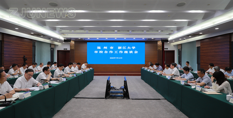7月13日,浙江大学与温州市市校合作工作座谈会在浙江大学紫金港校区举行。浙江省委常委、温州市委书记陈伟俊,温州市委副书记、市长姚高员率市党政代表团来浙江大学调研座谈。