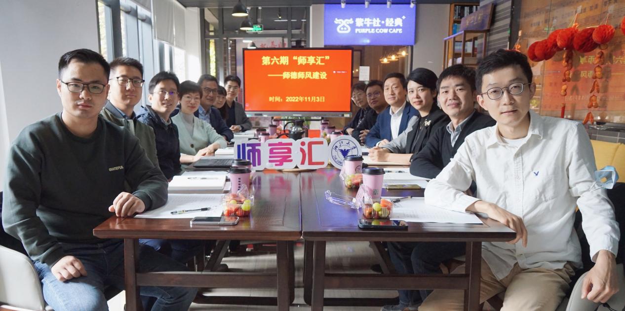 2022年11月3日上午,党委教师工作部第六期“师享汇”活动暨经济学院“‘经师•人师’双修计划”师德师风建设座谈会在经济学院举行。党委教师工作部副部长徐洁、人力资源处副处长朱海明、学院党委书记张子法、学院党委副书记卢飞霞以及经济学院、建工学院教师代表出席活动。会议由学院党委副书记卢飞霞主持。