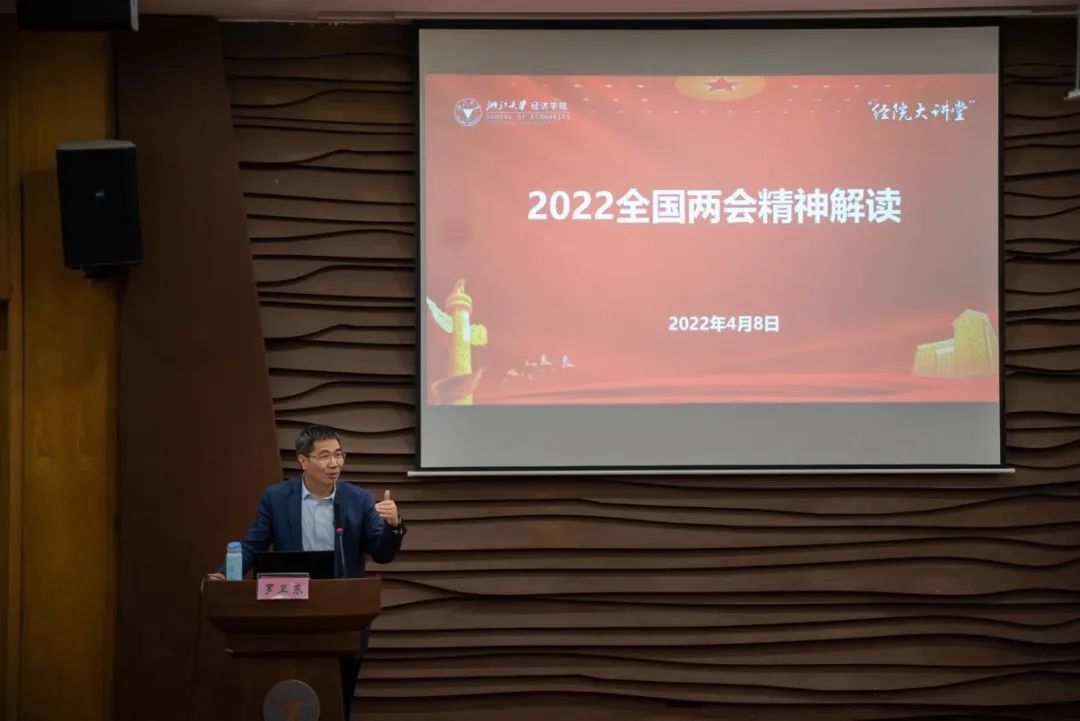 4月8日下午,“经院大讲堂——2022全国两会精神解读”专题报告会在经济学院120报告厅举办,第十三届全国政协委员、浙江大学城市学院校长、浙江大学原副校长罗卫东教授作主题报告。经济学院领导班子及学院师生代表出席报告会。近700名师生以及三万余名校友通过直播观看。会议由学院党委书记张子法主持。